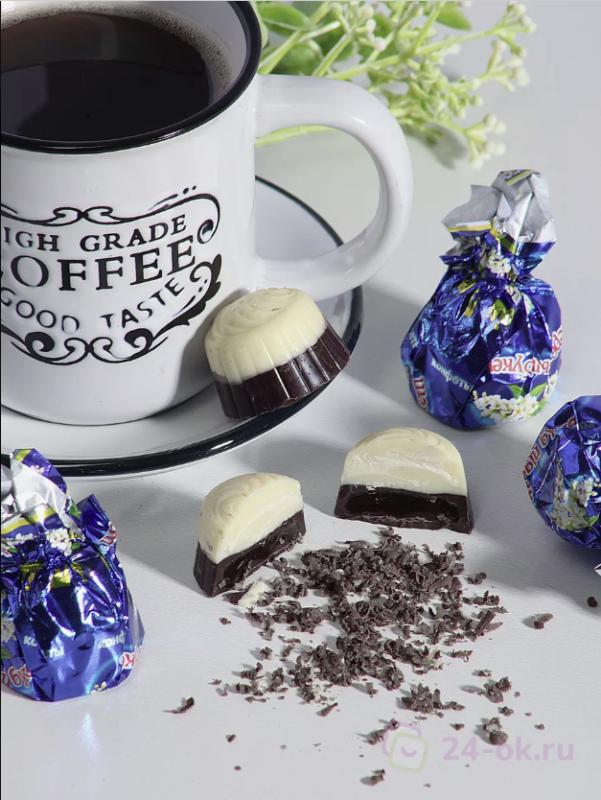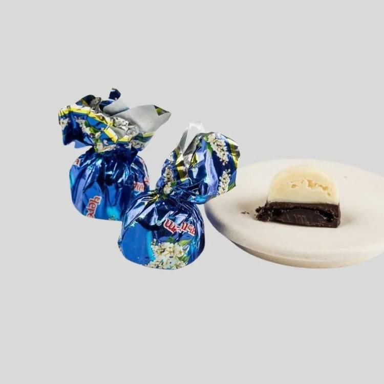 Куполообразные конфеты, представляющие собой композицию белого и тёмного шоколада. Причем верхний слой из белого шоколада содержит нежную сливочную начинку, а нижний слой из тёмного шоколада содержит ярко выраженную черёмуховую начинку. Такое традиционное полюбившееся многим сочетание черёмухи со сливками порадует сладкоежек напоминанием черёмухового пирожного, теперь только с искусным обрамлением его в натуральный высококачественный шоколад.