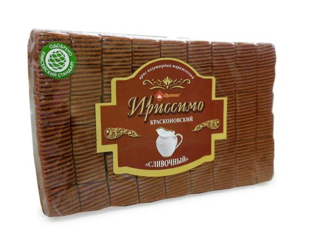 Полутвердый тираженный молочный ирис квадратной формы с рифлением на поверхности.
