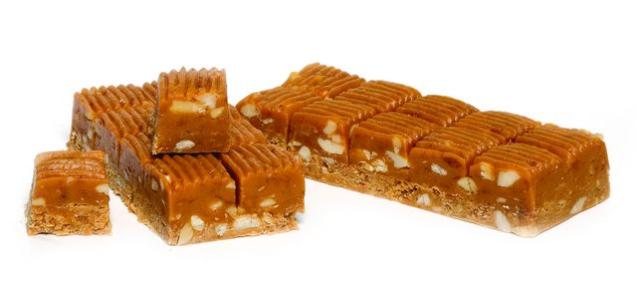 с добавлением обжаренного дроблёного арахиса. Отличаются ярко-выраженным вкусом томленного сгущенного молока с нотками арахиса и молочной карамели. СОСТАВ: шоколадная глазурь (сахар, какао тертое, эквивалент масла какао (растительные негидрогенизированные масла: пальмовое, ши, иллипе), эмульгатор - лецитин соевый, ароматизатор пищевой «Ванилин»), молоко сгущенное с сахаром (молоко цельное, молоко обезжиренное, сахар), патока, сахар, рафинированные дезодорированные растительные масла (пальмовое, рапсовое, соевое), ядро арахиса жареное дроблёное, сливки молочные сухие, масло из коровьего молока, эмульгатор-лецитин соевый, ароматизатор пищевой "