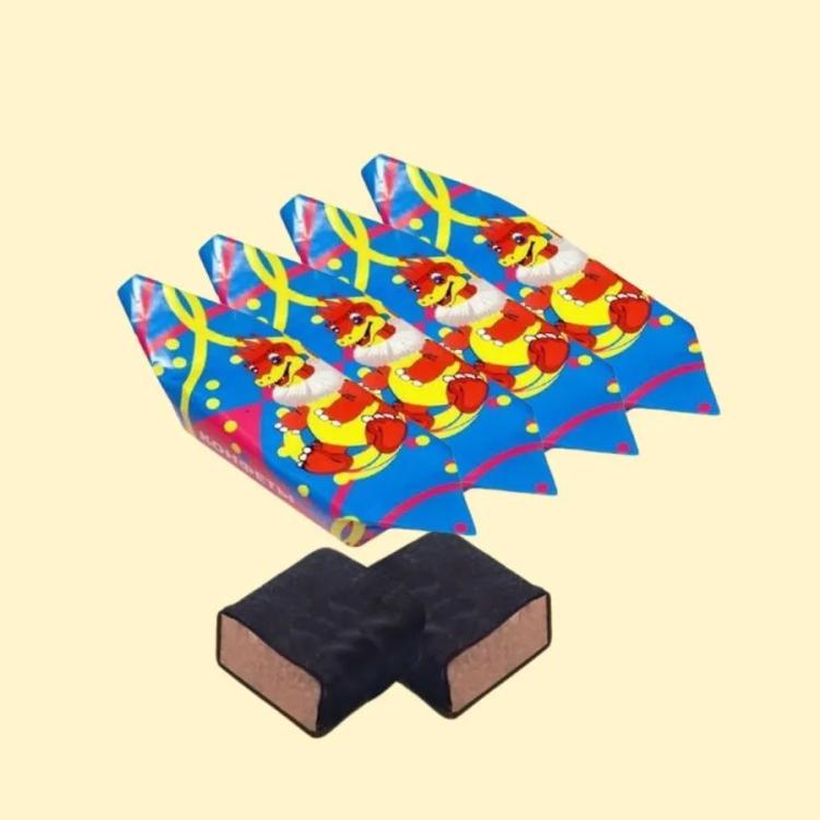 Глазированные шоколадной глазурью конфеты продолговатой прямоугольной формы. Корпус состоит из пралине с добавлением обжаренного ореха фундука и вафельной крошки.