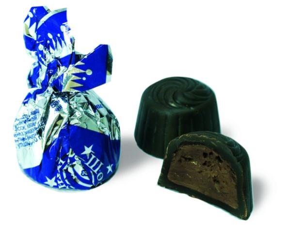 Формовые фирменные конфеты куполообразной формы с рифленным рисунком на поверхности. Начинка изготовлена с добавлением какао-порошка и какао-крупки.