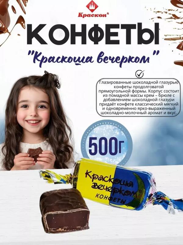 Глазированные шоколадной глазурью конфеты продолговатой прямоугольной формы. Корпус состоит из помадной массы крем – брюле с добавлением шоколадной глазури, спирта, а также добавление сюда же сухого молока смягчает и придаёт конфете классический мягкий и одновременно ярко-выраженный шоколадно-молочный аромат и вкус.