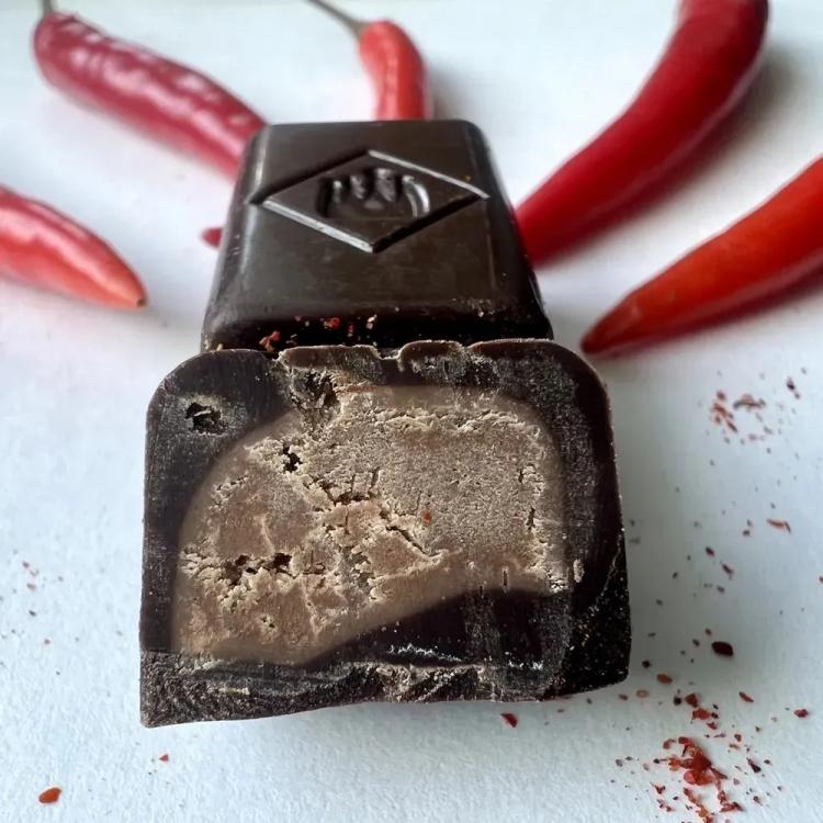 Шоколадные конфеты квадратной формы, с добавлением в начинку крошки солёного крекера.