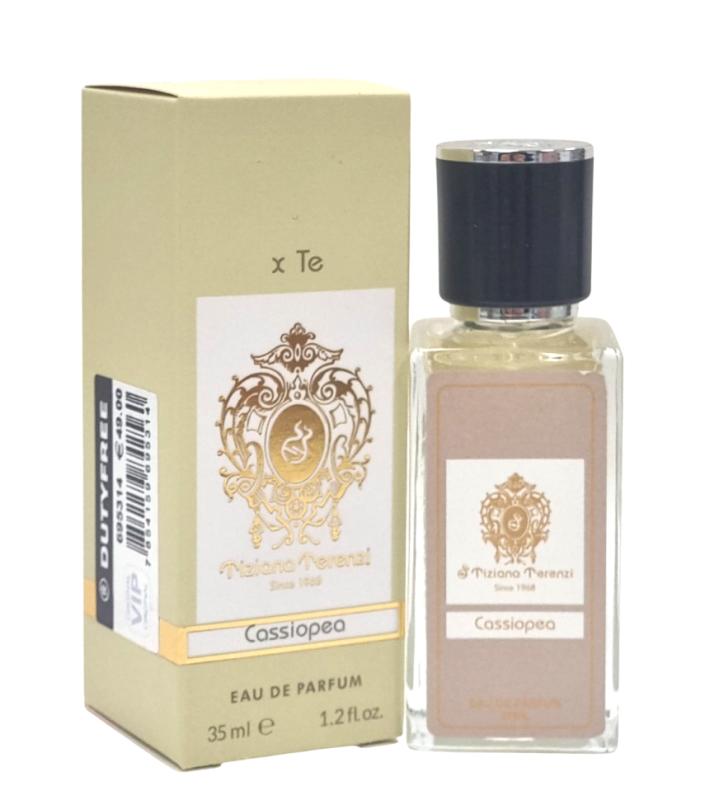 Tiziana Terenzi Cassiopea – мягкий, таинственный, цветочно-фруктовый унисекс аромат, выпущенный в 2015 году в рамках «Лунной коллекции». Вдохновением для создания аромата послужило созвездие Кассиопея. Композиция начинает звучать с аккордов таинственного папоротника, свежего лимона, сочной черной смородины, энергичной маракуйи. Сердечные ноты наполнены яркой пряностью цветущей гвоздики, трогательной невинностью ландыша и роскошью пленительной чайной розы. Безумно притягательный шлейф соткан из бархатисто-сливочного сандала, нежнейших бобов тонка и теплого мускуса.