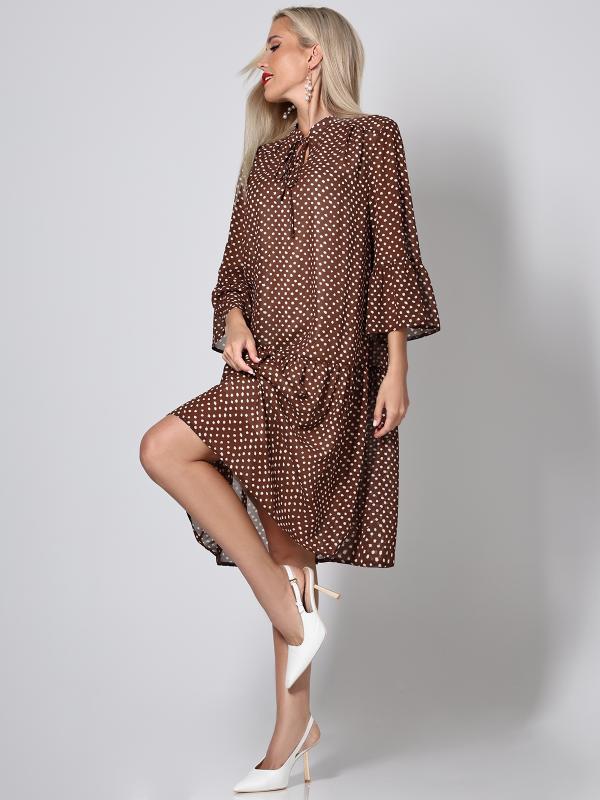 Летнее яркое длинное платье — это идеальный выбор для тех, кто ценит стиль и комфорт в повседневной одежде. Платье выполнено из плательной ткани, которая обеспечивает легкость и воздухопроницаемость, что особенно важно в жаркие летние дни. Основной особенностью этого платья является его яркий и насыщенный цвет, который привлечет внимание и поднимет настроение. Оно идеально подходит для повседневного ношения, создавая легкий и непринужденный образ. Плательная ткань приятна на ощупь и обеспечивает комфорт на протяжении всего дня. Воротник-стойка добавляет нотку утонченности и прекрасно сочетается с общим стилем платья. Модель платья выполнена в А-силуэте, который является одним из самых универсальных и популярных силуэтов. А-силуэт подчеркивает талию и плавно расширяется к низу, создавая женственный и романтичный образ. Такой крой подходит для всех типов фигур, делая платье доступным и комфортным выбором для каждой женщины. Рукава длиной 3-4 добавляют платью элегантности и утонченности. Для ухода за этим плать
