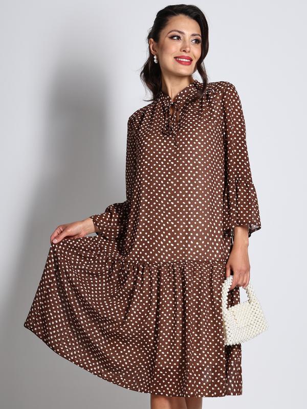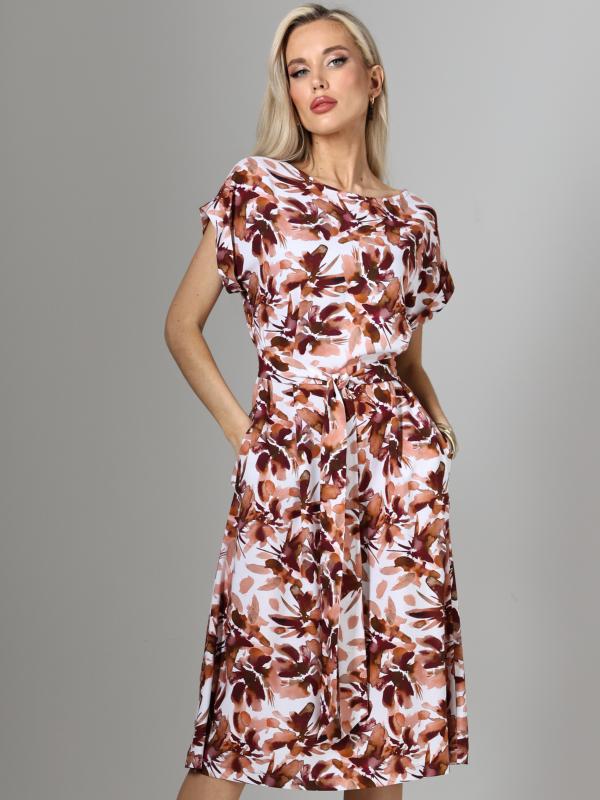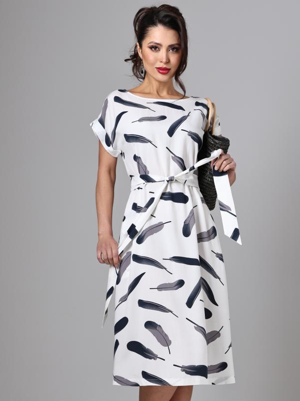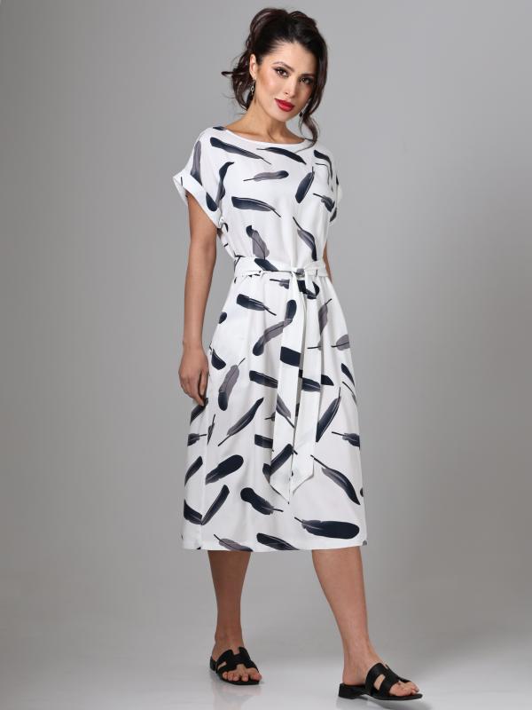 Платье свободного кроя с коротким цельнокроенным рукавом - лучший выбор для гардероба! Волан по низу юбки придает образу романтический настрой, а для большей элегантности пояс платья выполнен из той же ткани, что и волан. Обмеры изделия Длина: