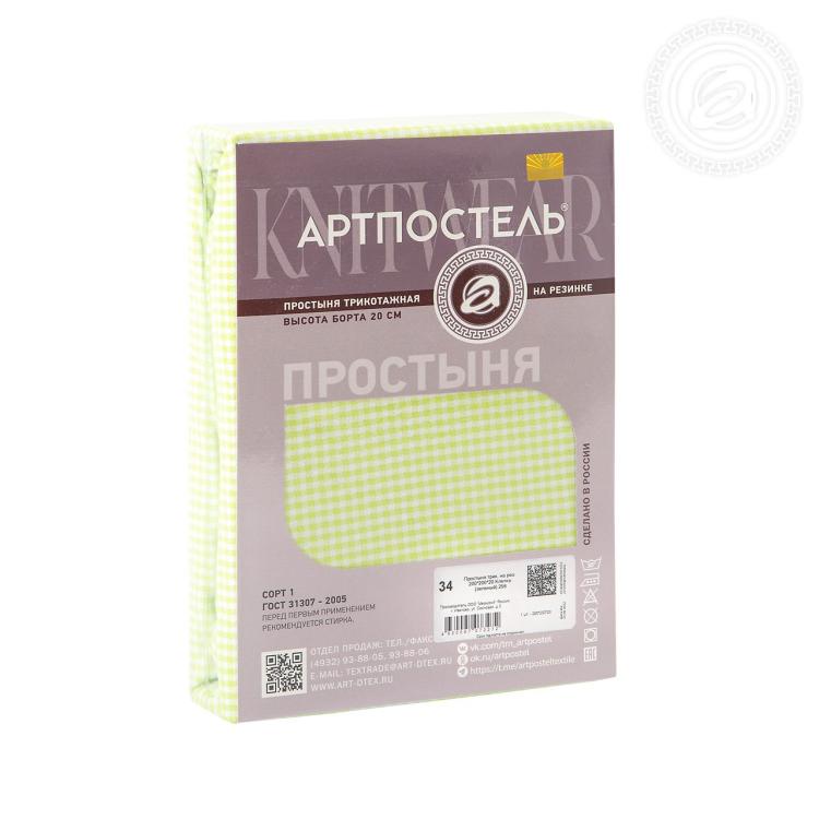 Простыня на резинке "Клетка (зеленый)" 120х200х20