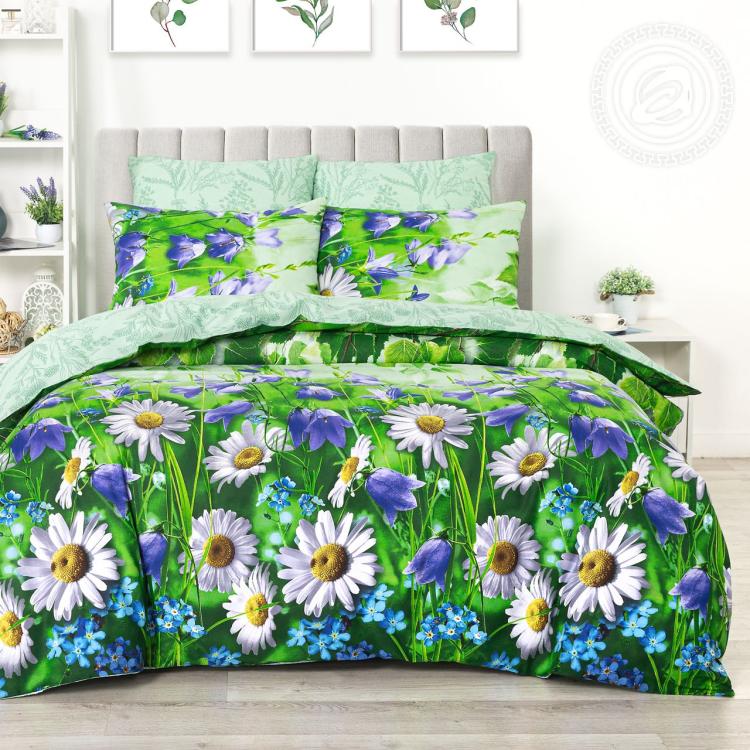 «Пелагея» – постельное белье с ромашками, которое дарит ощущение доброго утра. Перед нами летний луг с россыпью белоснежных цветов и кронами стройных берез. В этом дизайне сочетаются традиции и знаковые детали. Нежные и насыщенные природные тона создает атмосферу спокойствия и гармонии, а гипоаллергенный материал обеспечивает оптимальный микроклимат во время сна. Комплект из поплина в эко-стиле дарит летние краски круглый год!