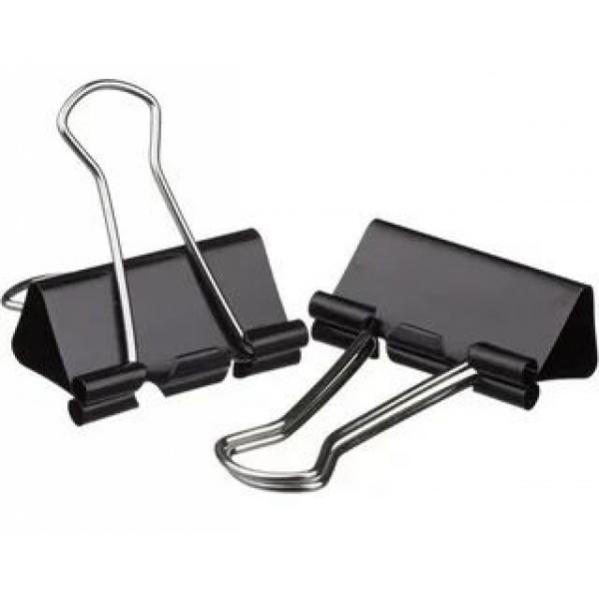 Металлический зажим для бумаг, корпус окрашен в черный цвет. Для скрепления большого количества листов. Не деформируют бумагу. Цвет - черный. 12 штук в коробочке.