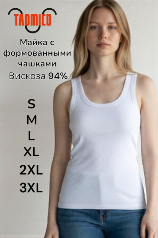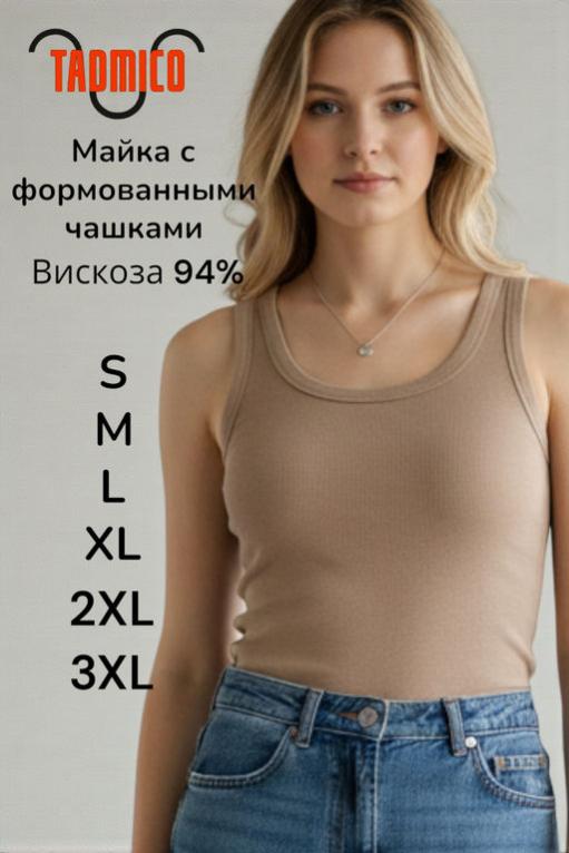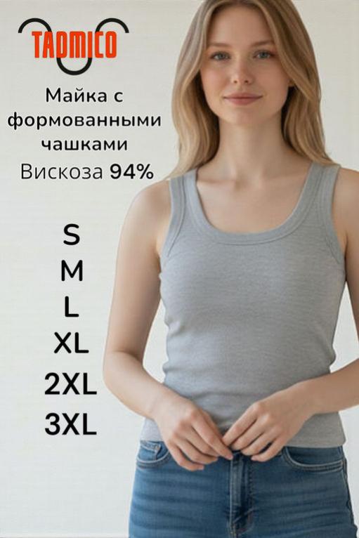 Майка на бретелях изготовлена из вискозы - 94% с добавлением 6% спандекса. Формованные чашки обладают высокой воздухопроницаемостью и оказывают естественную поддержку груди для чашек А, В.
