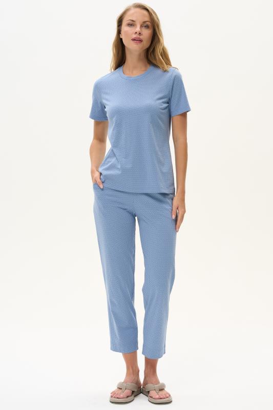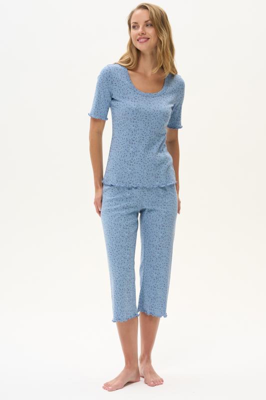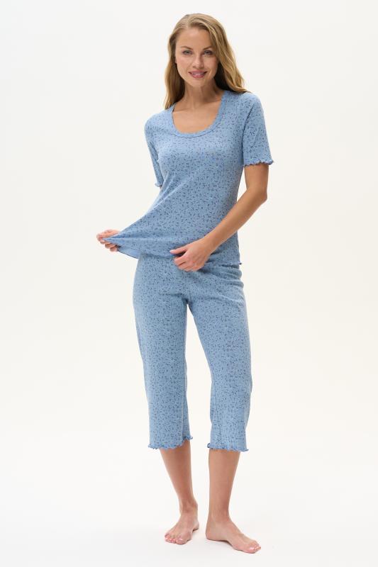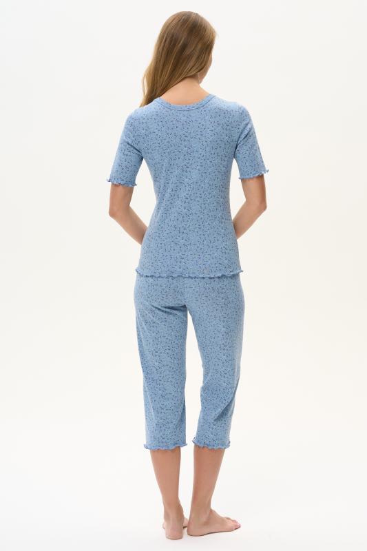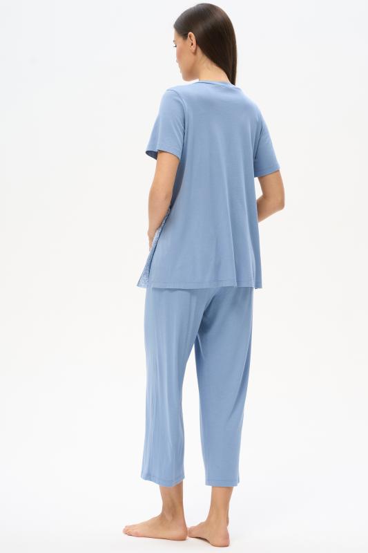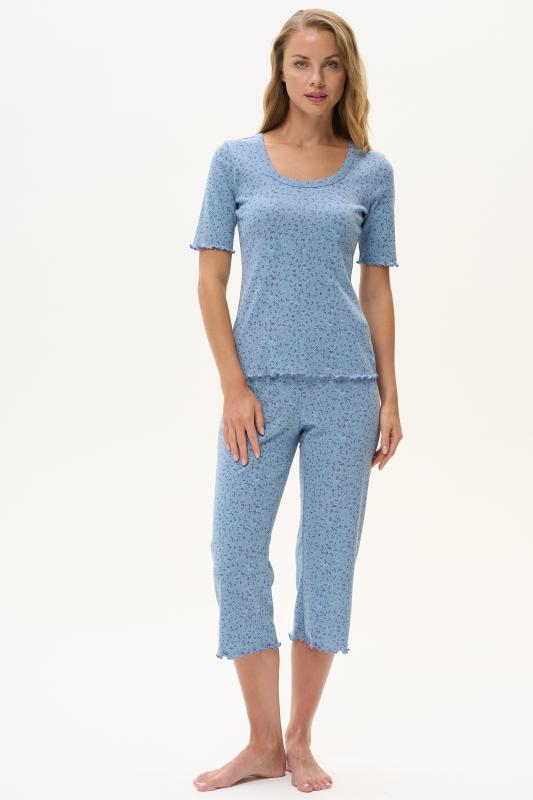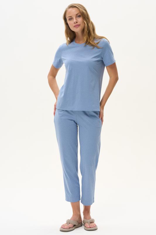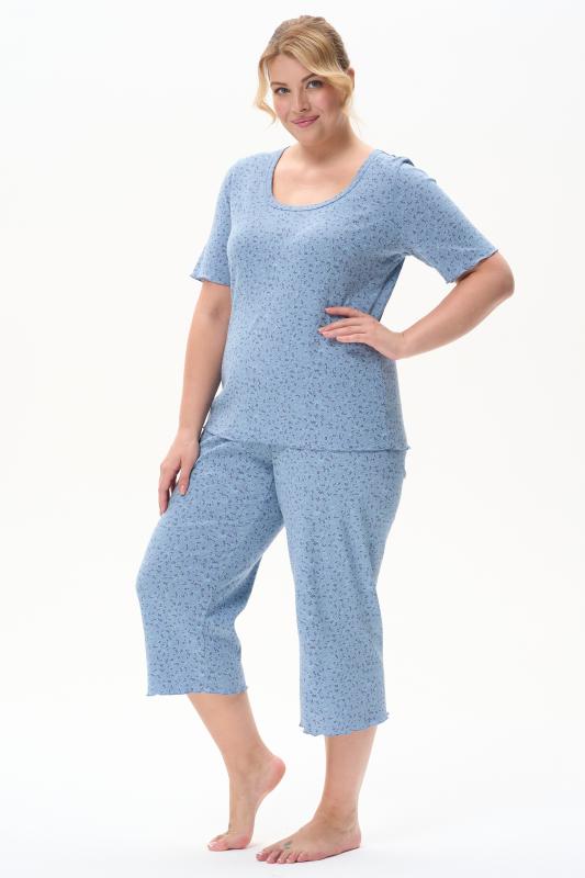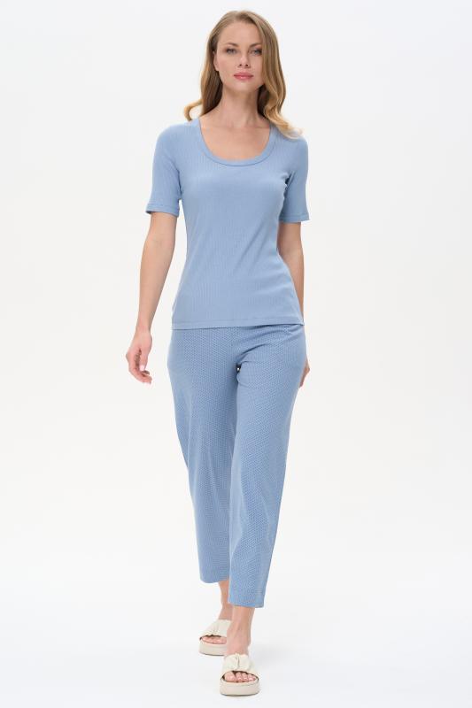 Комплект выполнен из хлопкового меланжевого полотна. Майка с круглым вырезом горловины. Спереди подрез и средний шов декорирован мережкой. Шорты без карманов, пояс с эластичной лентой внутри. Боковые швы шорт декорированы мережкой. Рост модели на фото 178см.