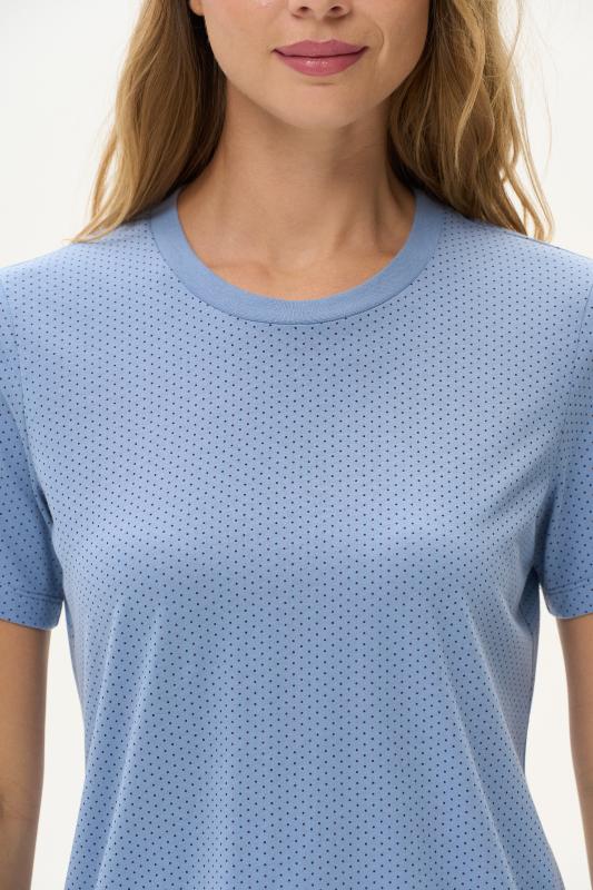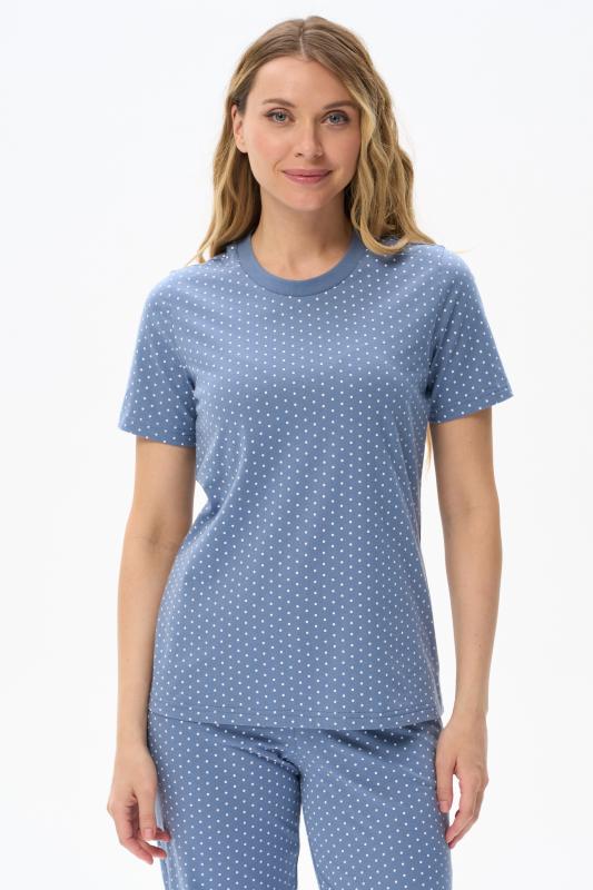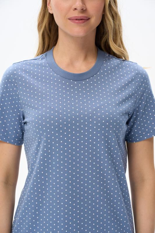 Футболка модного кроя - свободная и чуть укороченная, до середины бёдер. Выполнена из хлопкового трикотажного полотна. Вырез горловины обработан хлопковым полотном - рибана. Свободный втачной рукав гармонизирует общий стиль. Рост модели на фото 175 см