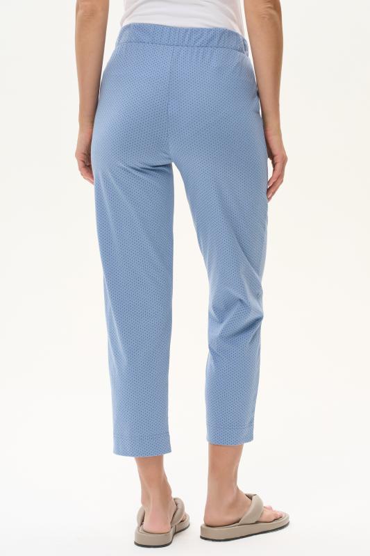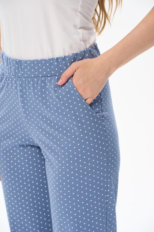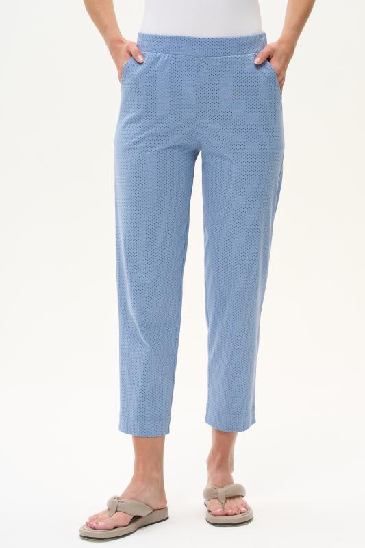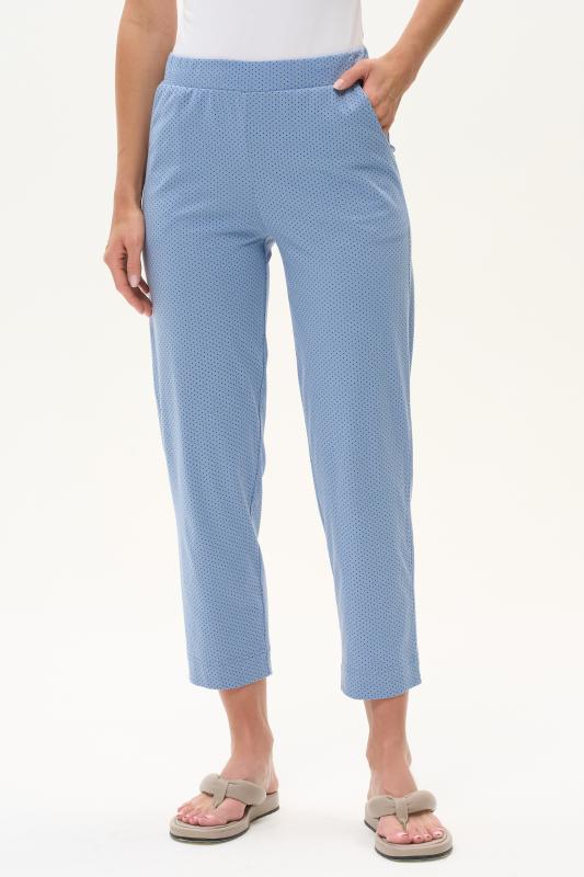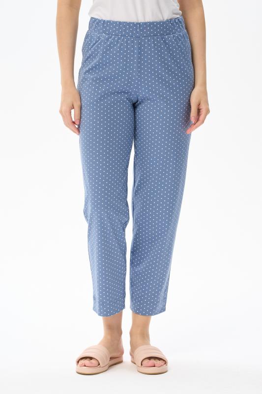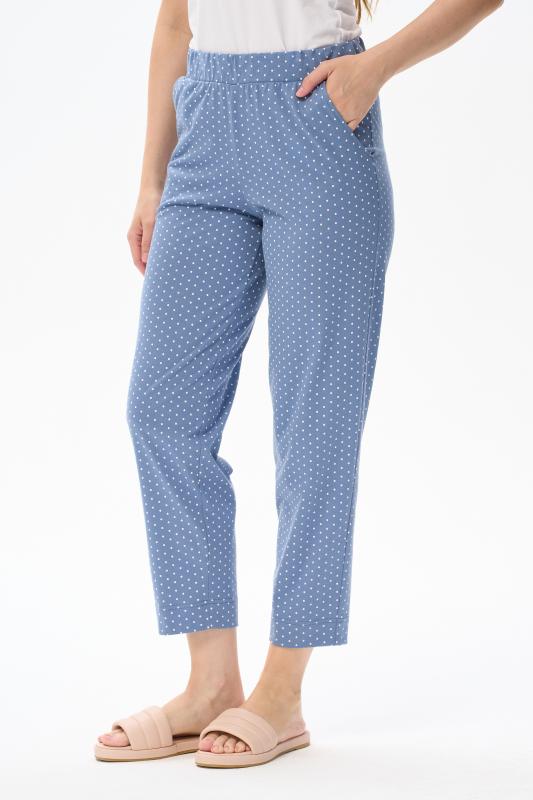 Универсальные брюки длиной 78 из хлопкового полотна. Пояс с эластичной лентой, два фигурных боковых кармана. Рост модели на фото 175 см.