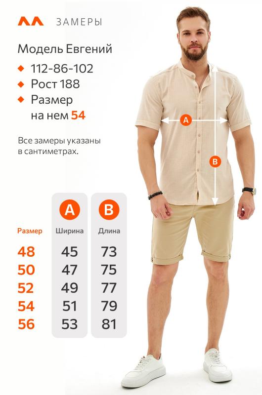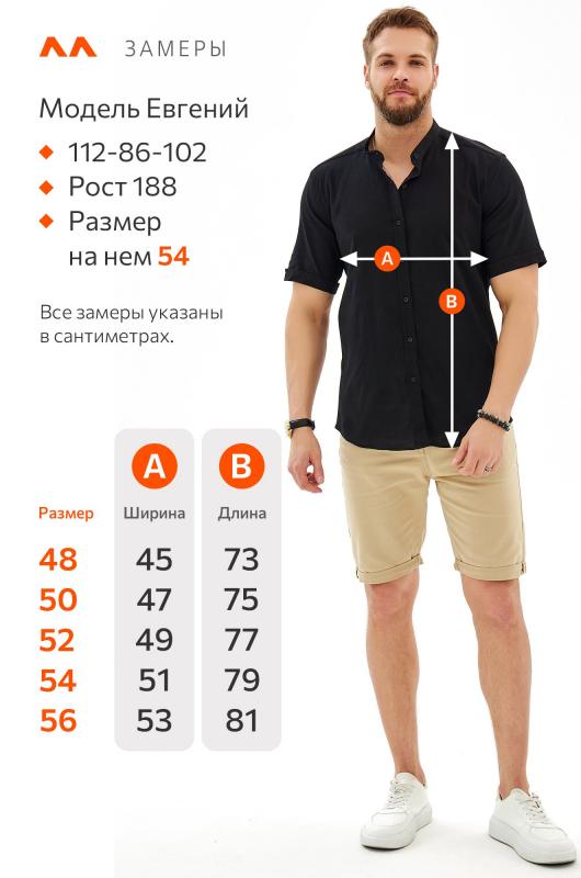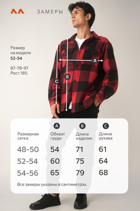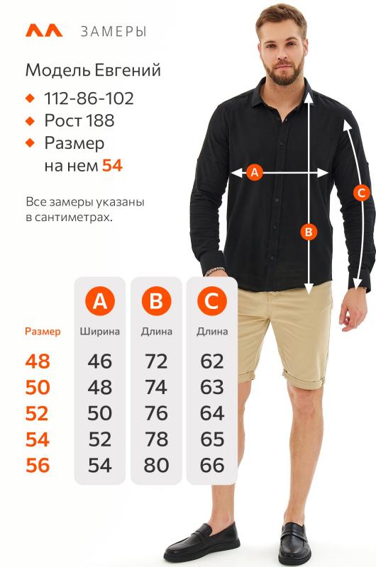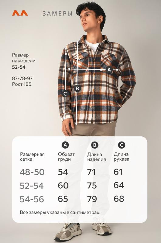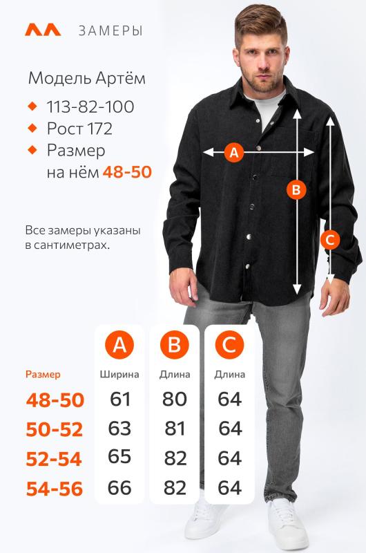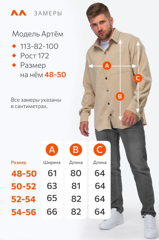 Модель Артем, его рост 172 см, параметры 113-82-100 см. На нем рубашка 52 размера.