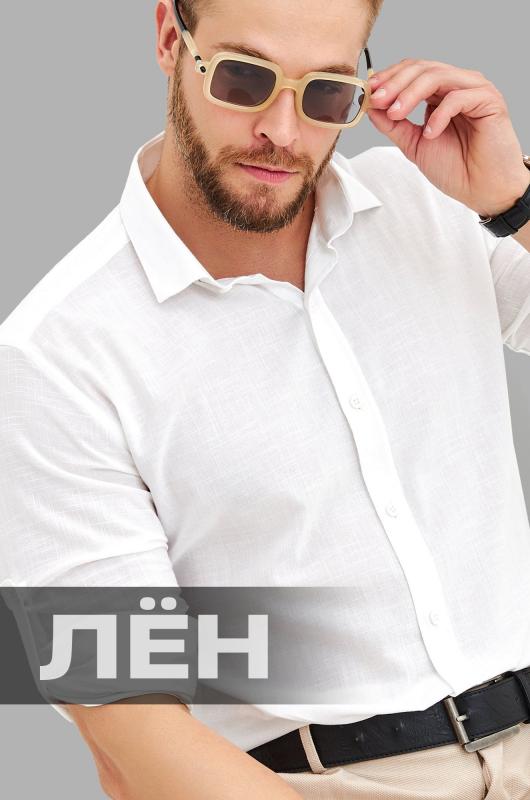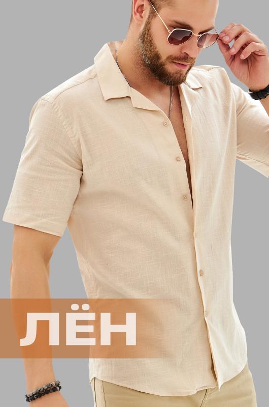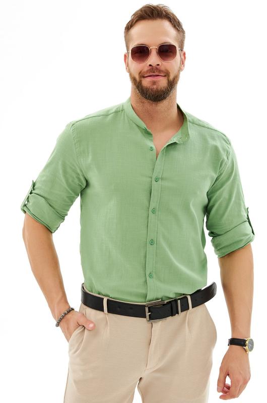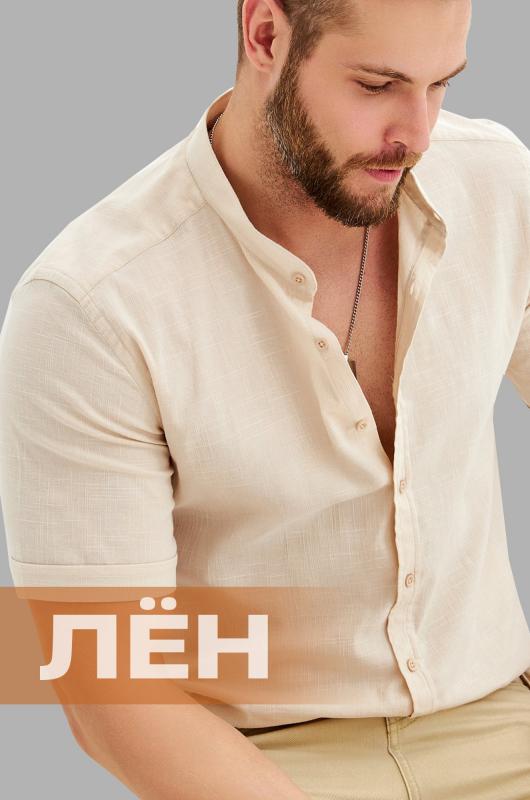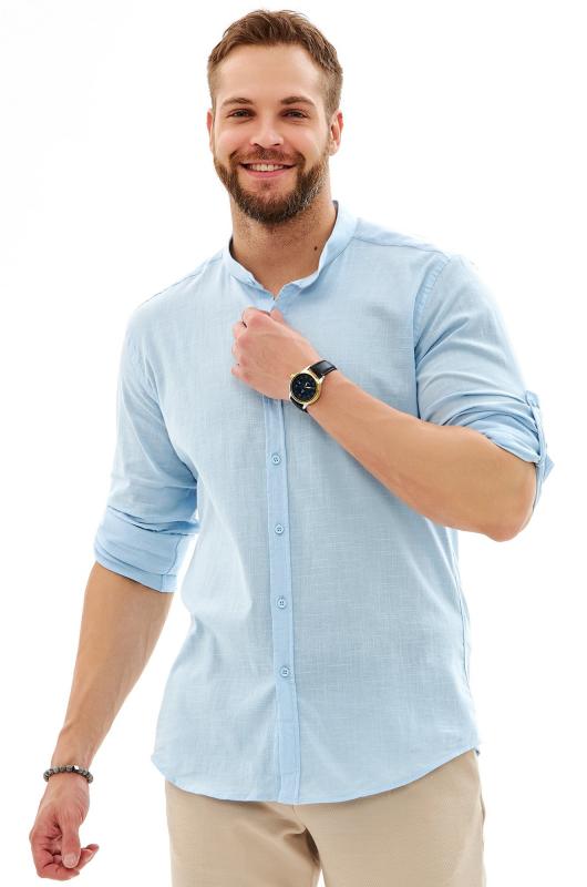 Льняная рубашка для мужчин выполнена из турецкой хлопковой ткани с добавлением льна. Короткий рукав делает рубашку приталенного кроя идеальной для лета. Воротник-стойка добавляет образу харизмы.