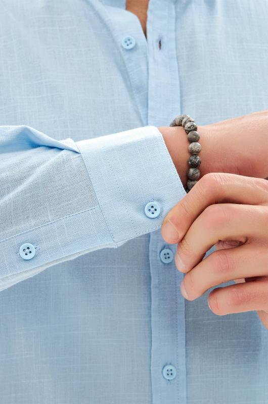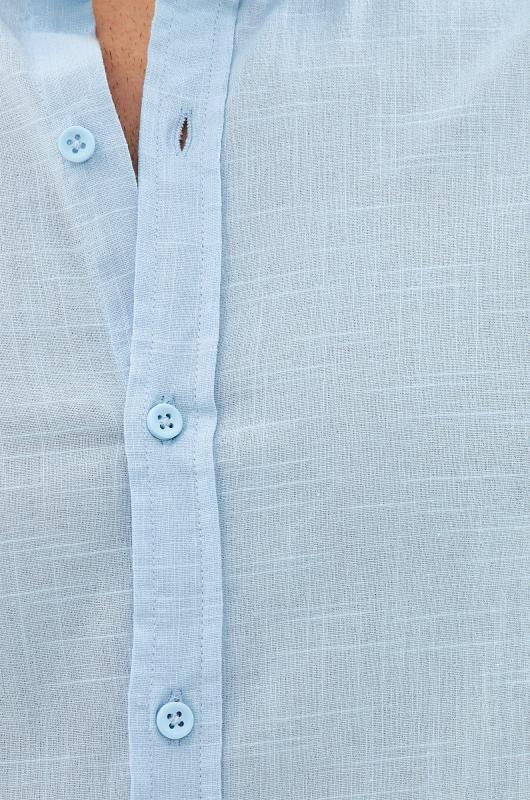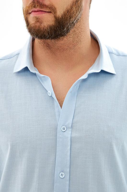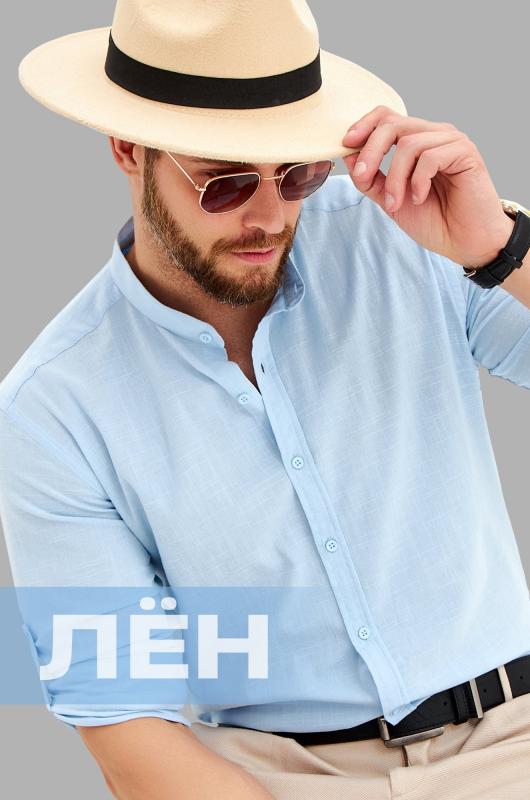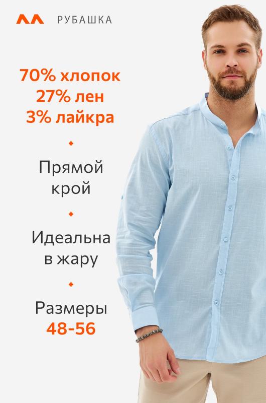 Аккуратная, но при этом стильная и неповторимая! Приталенная мужская рубашка выполнена из хлопка и льна – идеальный вариант для кэжуал-образов!Базовый голубой цвет, застежка на классические пуговицы и отложной воротник превратят каждый образ в брутальный и лаконичный. Длинные рукава можно легко регулировать с помощью застёжки — адаптируй образ под погоду и настроение.Благодаря лайкре в составе хлопковая рубашка прочная и сохраняет форму даже после частых стирок.Однотонная рубашка подойдет для офиса, учебы и официальных мероприятий. Льняная сорочка для мужчин станет крутой базой на каждый день. В классической голубой рубашке будь безупречен в любой ситуации! Рост модели 188 см, параметры: объем груди 112, объем талии 86, объем бедер 102 см. На нем размер 54.