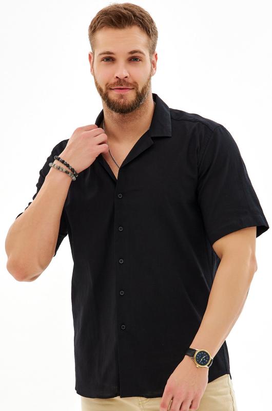 Однотонная рубашка подойдет для офиса, учебы и официальных мероприятий. Льняная сорочка для мужчин станет крутой базой на каждый день. В классической черной рубашке будь безупречен в любой ситуации!