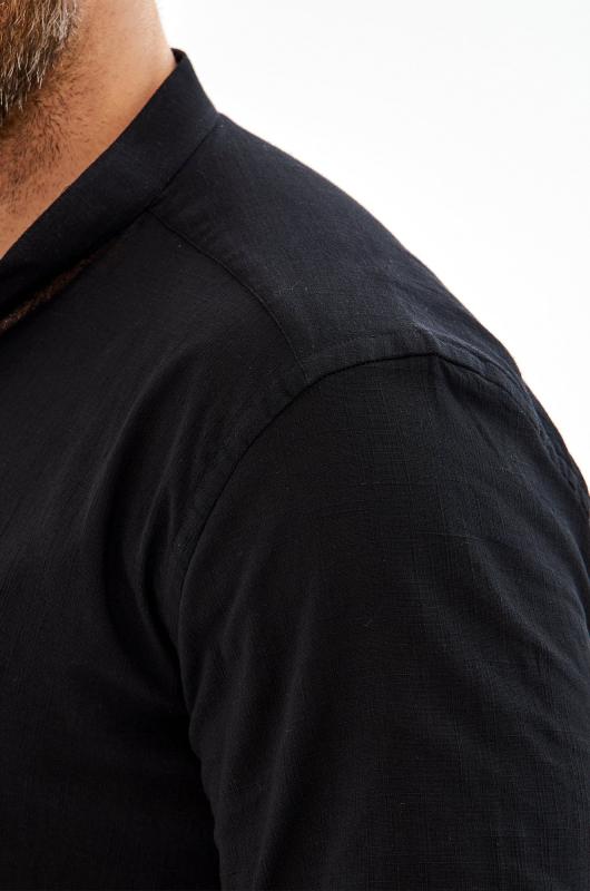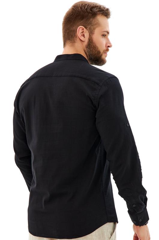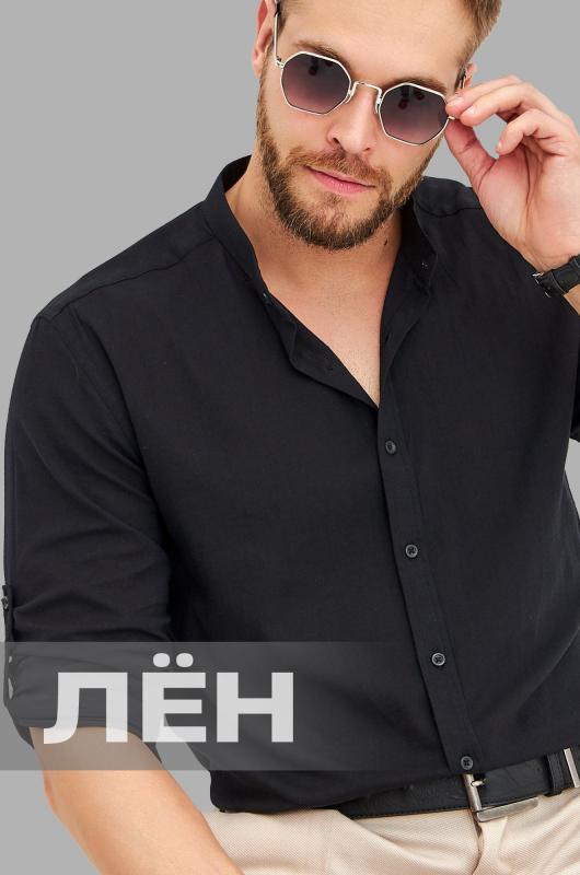 Черная рубашка выполнена из турецкой хлопковой ткани с добавлением льна. Воротник стойка придает образу харизмы. Льняная рубашка с длинным рукавом станет идеальным вариантом на каждый день: в офис, на прогулку, деловую встречу.