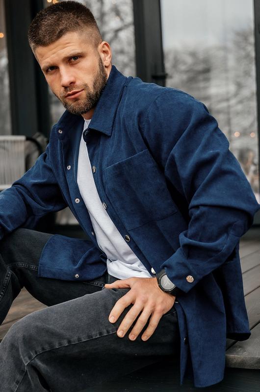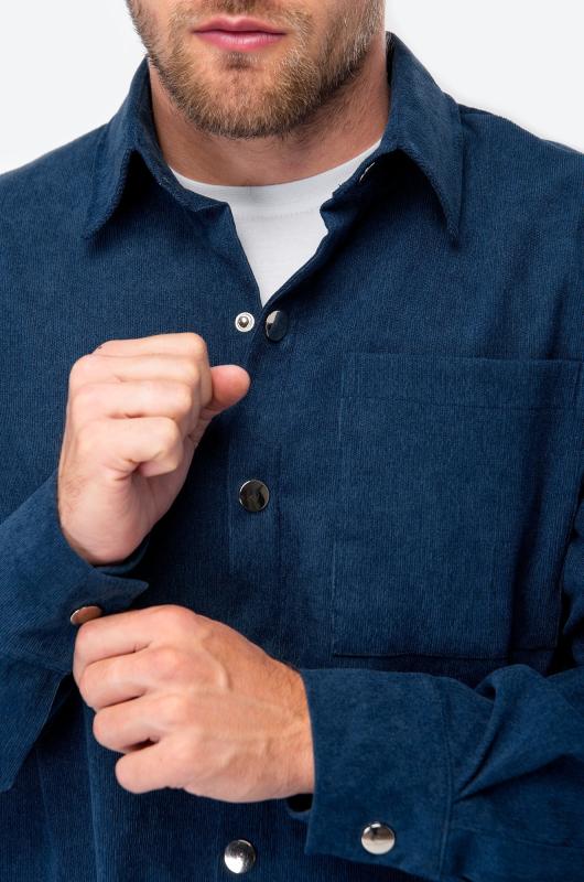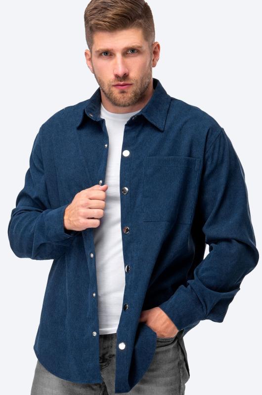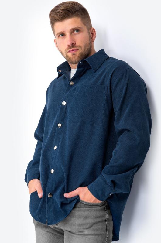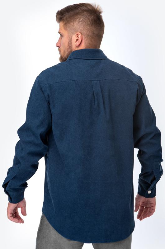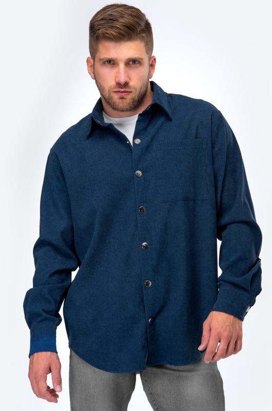 Мужская синяя рубашка из мягкого вельвета – отличный способ подчеркнуть свою индивидуальность. Свободный крой подарит уют и комфорт, а карман на груди и застежка на металлические кнопки добавят стильную изюминку в образ. Однотонная вельветовая рубашка с удлиненной спинкой идеальна для прохладной весны и зябкой осени.