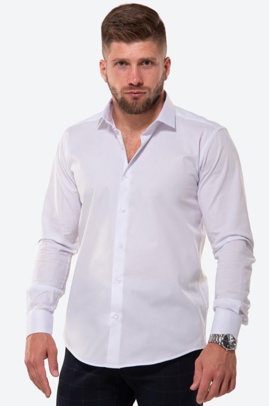 Мужская рубашка – это универсальный элемент гардероба, идеальное дополнение к любому образу. Белая сорочка выполнена из хлопковой ткани поплин, тонкого и легкого полотна. Модель приталенного кроя, создаёт собранный классический образ. Крой выверен до мелочей — идеальная длина позволяет носить рубашку в заправленном виде и на выпуск, линия плеч идеально сядет, не сковывая движения.