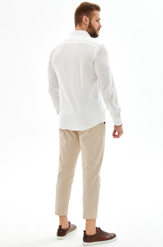 Белая рубашка выполнена из турецкой хлопковой ткани с добавлением льна. Воротник стойка придает образу харизмы. Льняная рубашка с длинным рукавом станет идеальным вариантом на каждый день: в офис, на прогулку, деловую встречу.