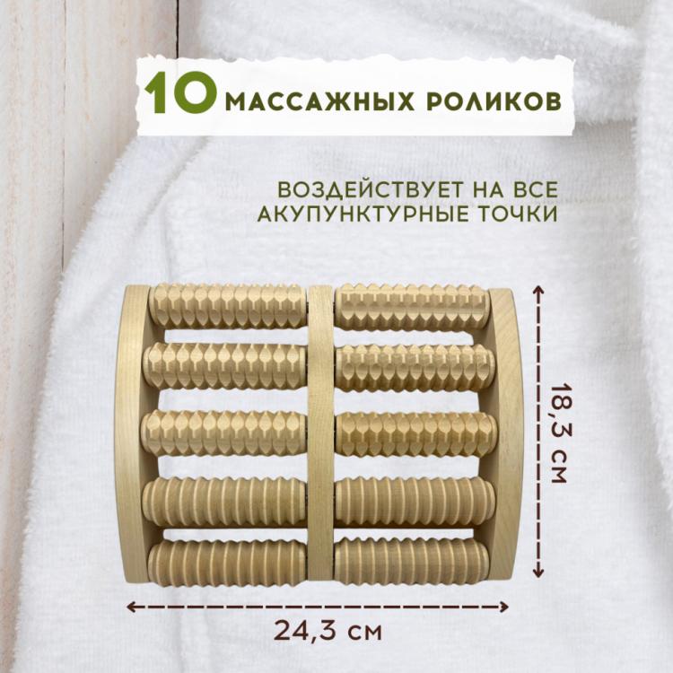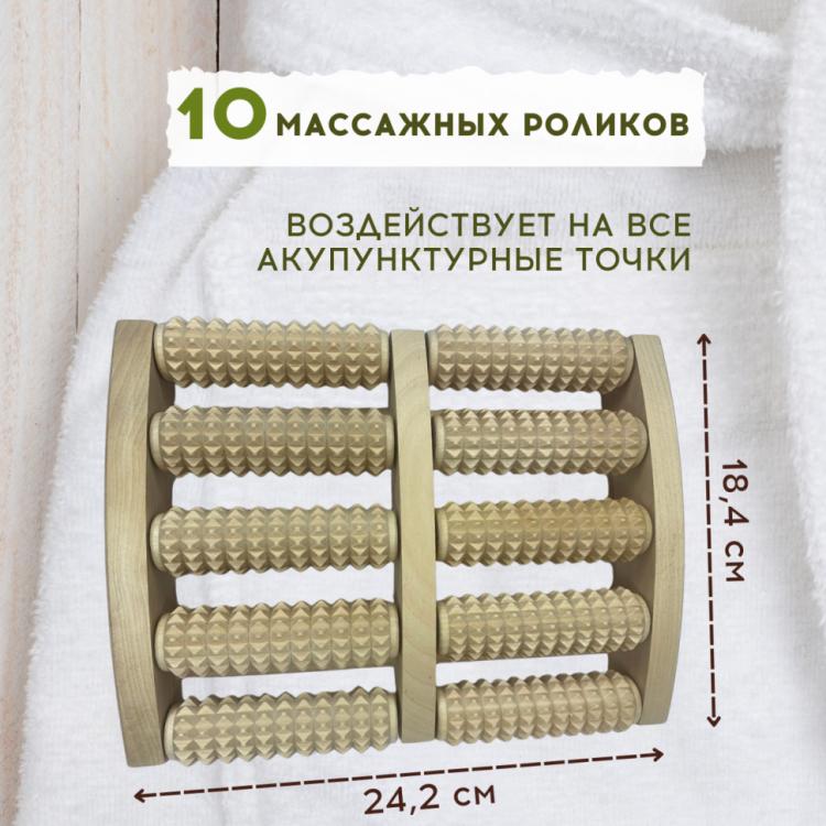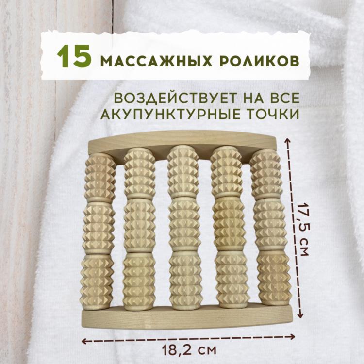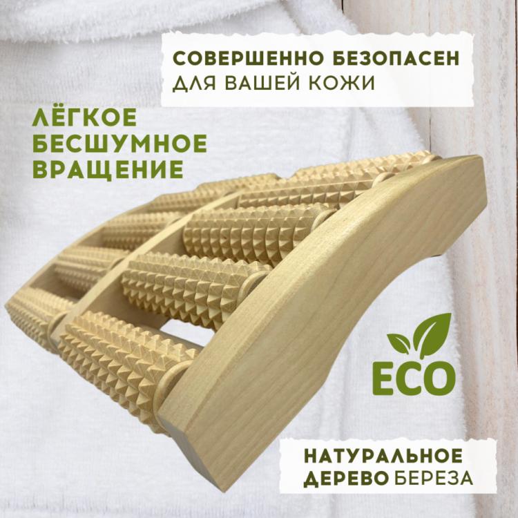 Деревянный массажер для стоп и ног с шипами — эффективное средство для расслабления и оздоровления в домашних условиях. Изготовлен из натуральной алтайской березы. Используется для профилактики и снятия усталости, улучшения кровообращения и проработки рефлекторных зон на стопах. Подходит для мужчин и женщин любого возраста, в том числе пожилых людей. Массажер оснащён зубчатыми роликами, которые оказывают умеренное акупунктурное воздействие на подошвенную поверхность стопы. Благодаря широкой рабочей зоне можно массировать обе стопы одновременно. Подходит для регулярного использования после работы, спорта, долгой ходьбы, а также при сидячем образе жизни. Рекомендуется при болях в ногах, отечности, нарушениях сна, стрессах, плоскостопии и гипотонии мышц голени. Помогает снять мышечное напряжение, восстановить тонус, расслабить нервную систему. Используется в качестве профилактики заболеваний ног, а также в реабилитационный период после травм и операций. Подходит как для индивидуального использования, так и в ка
