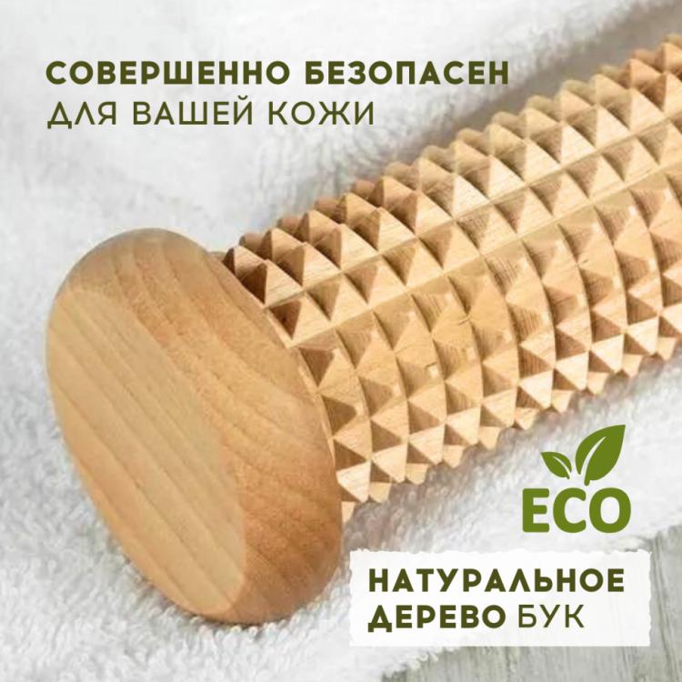Деревянный массажер изготовлен из натуральной алтайской березы. Это ручной массажный валик с шипами, предназначенный для точечного массажа стоп, ног, спины, шеи и рук. Массажер помогает при плоскостопии, улучшает кровообращение, снимает мышечное напряжение и отеки. Идеален для домашнего ухода за телом и лимфодренажного массажа. Регулярное использование деревянного массажера от усталости ног активизирует кровоток, ускоряет метаболизм и способствует выведению токсинов. Массаж валиком оказывает мягкое акупунктурное воздействие, улучшает общее самочувствие и дарит расслабление мышц после тяжёлого дня.