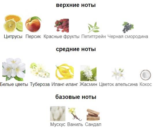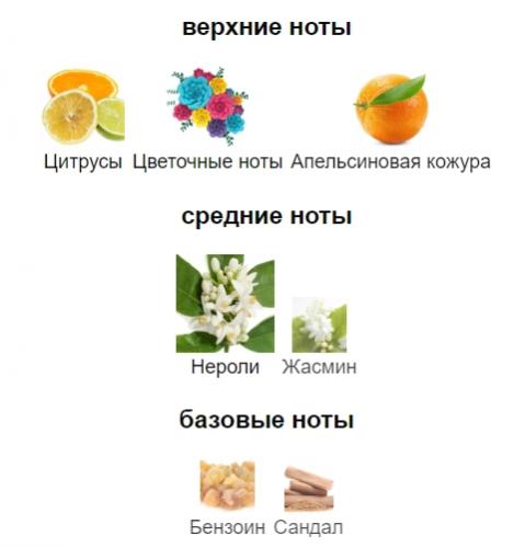 Базовый аккорд: белый мускус, ваниль, сандаловое дерево.