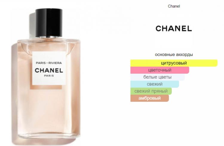Paris Riviera — безукоризненно стильный цветочно-фруктовый унисекс-парфюм, выпущенный в 2019 году под маркой знаменитого французского бренда Chanel. Ароматическая композиция Париж-Ривьера создана известным парфюмером Оливье Полжем и станет прекрасным дополнением к женскому и мужскому образу, внеся в него особый французский стиль и шарм. Звучание ароматической композиции начинается с освежающих цитрусовых нот апельсина и петитгрейна с легкой примесью цветочных нот. В сердце парфюма распускается роскошный букет цветочных нот пряно-медового нероли и терпковатого жасмина. Тогда как финальный аккорд окутывает ванильно-смолистыми оттенками бензоина и нежным, волнующим мускусом, сплетающимися в долгий и невероятно красивый ароматический шлейф.