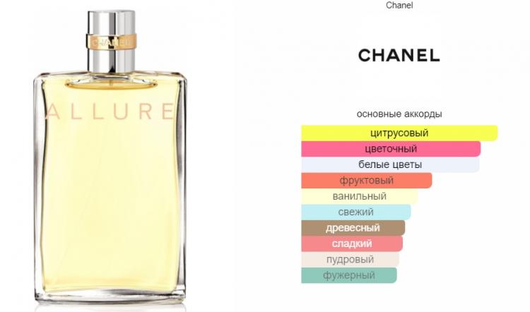 Allure Chanel - это женский аромат, созданный парфюмером Jacques Polge и выпущенный под брендом Chanel в 1996 году. Духи принадлежат к группе восточных цветочных ароматов. Allure сочетает в себе богатую и сложную композицию нот жимолости, маракуйи, магнолии, мандарина, водяной лилии, ванили бурбон, итальянского бергамота и египетского жасмина. В самом начале раскрывается свежий цитрусовый аромат, сопровождаемый цветочными запахами, которые заложены в сердце композиции. Данные духи от Chanel лучше всего раскрывают свой аромат в прохладное время суток. Попробовав этот аромат, Вы его никогда не забудете.