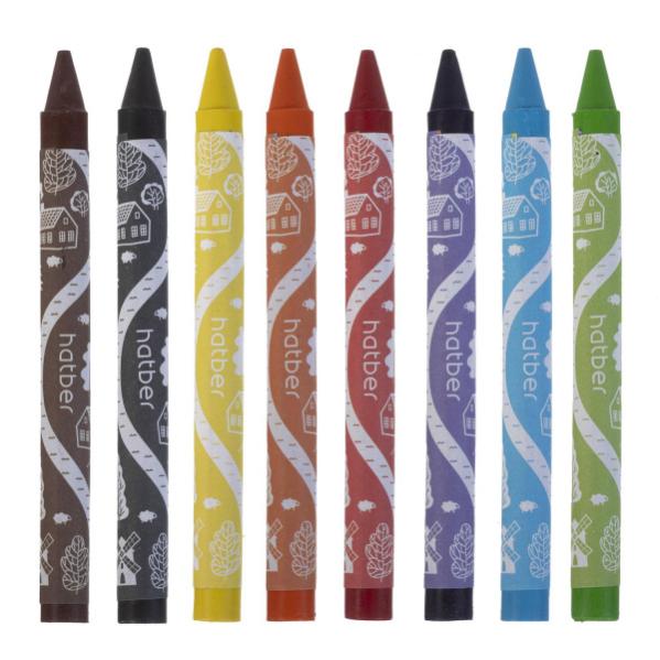 изготовлены на основе природных восков с добавлением масла, вследствие чего рисуют мягко, хорошо укрывая поверхность. Имеют яркие, насыщенные цвета. Каждый карандаш обернут в красочную этикетку. Картонная упаковка оснащена европодвесом. Предназначены для рисования и письма по бумаге, картону, дереву, ткани и камню.