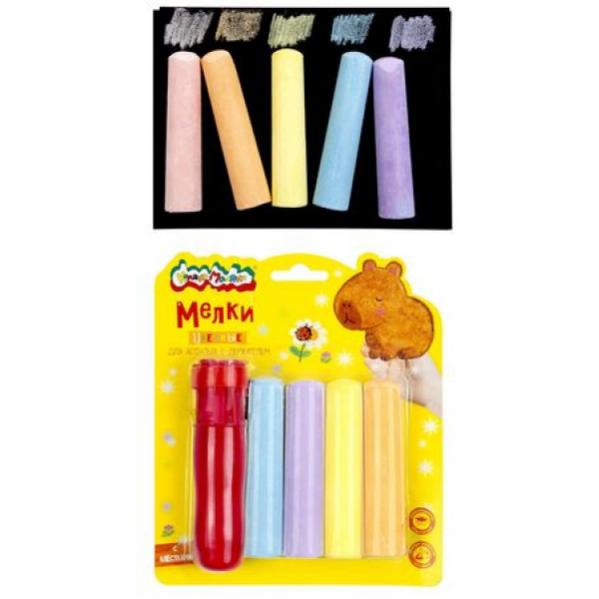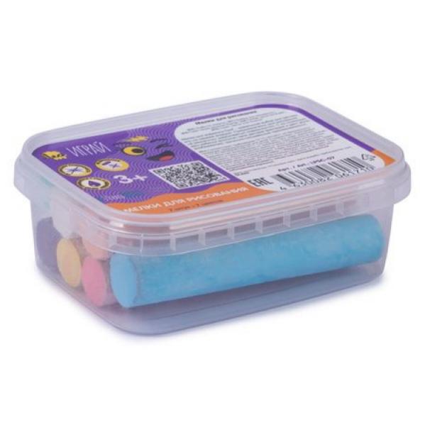 Разноцветные мелки подойдут для рисования на асфальте, бетоне. Хорошо пигментированы, экономично расходуются. В упаковке 5 разноцветных мелков.
