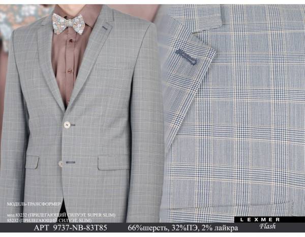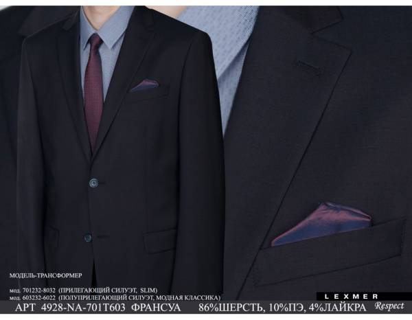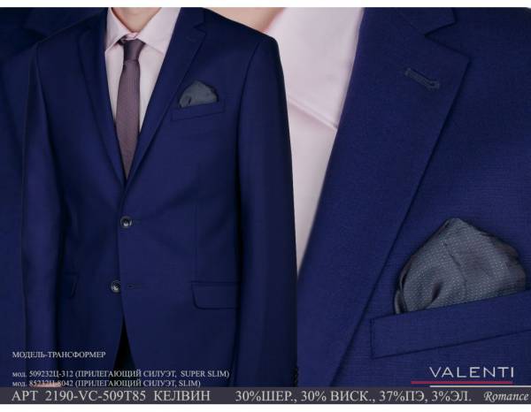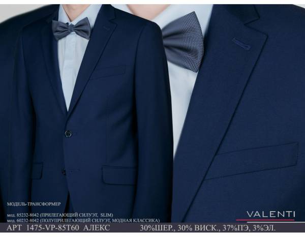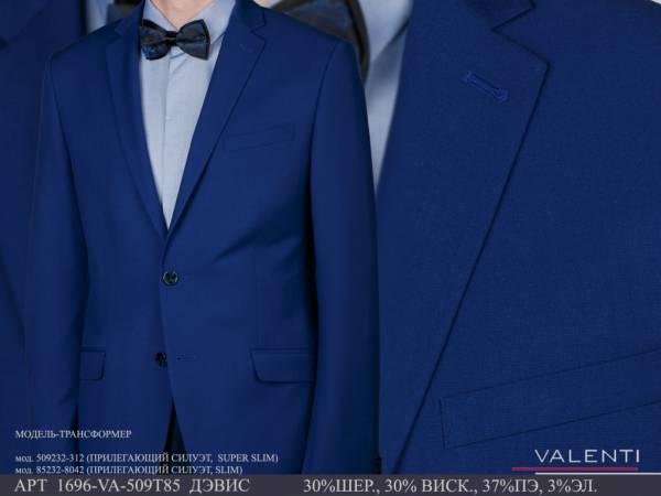 Костюм на выпускной, шикарный. Летний вариант. Ткань, цвет- все понравилось. На рост 173, ог 85, от 70, об 97 взяли размер 170-92-2, думали ноги в брюки не влезут( ноги спортивные очень), но все подошло, супер слим сидит отлично, нигде не жмет, как сын и хотел. Спасибо!