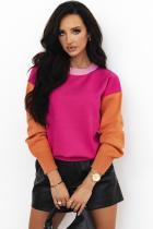 Bonbon Three Tone Contrast Round Neck Loose Sweater