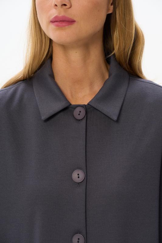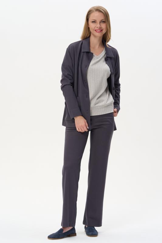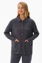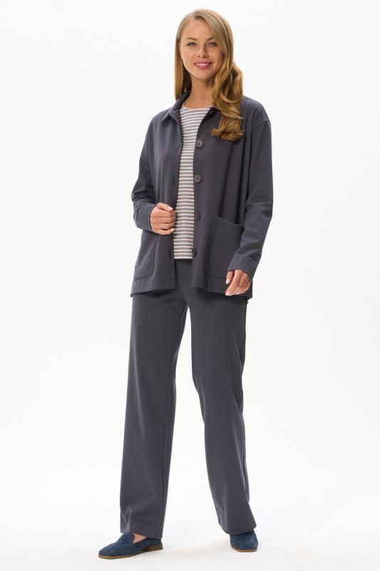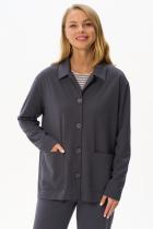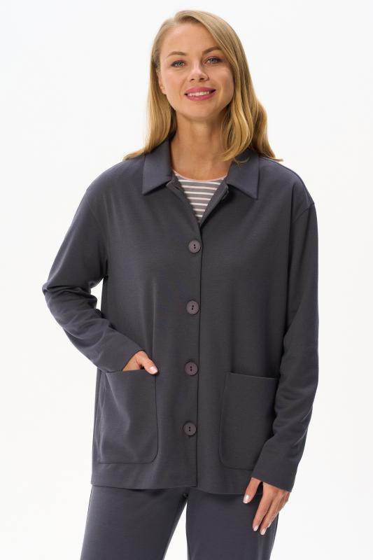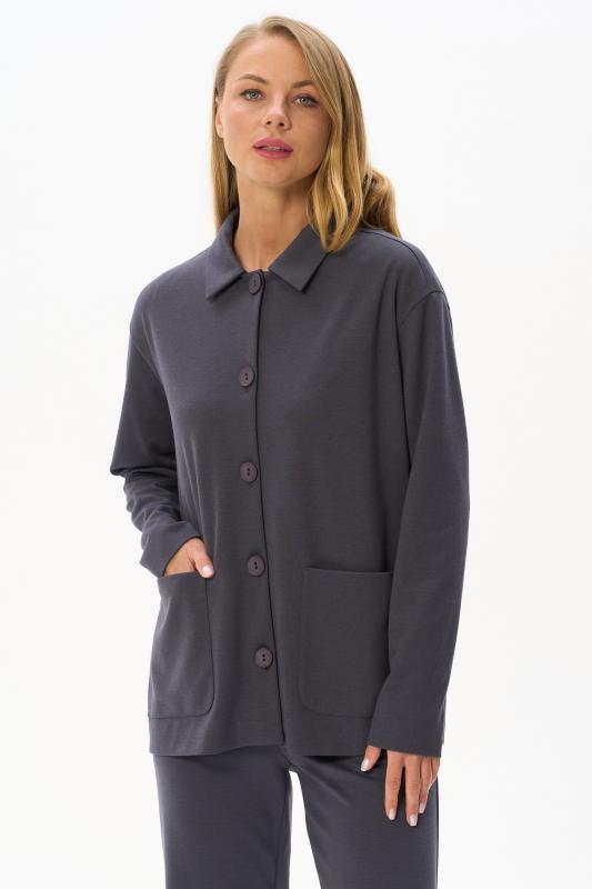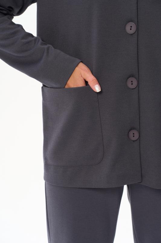 Трикотажный жакет в стиле Армани без подкладки с накладными карманами, красивого графитового цвета из джерси. Отложной воротник, застёжка на большие пуговицы. Чуть спущеная линия плеча, длинные втачные рукава. Рост модели на фото 178 см.