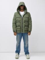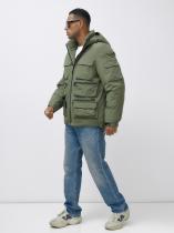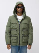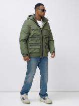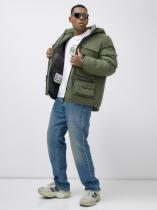 Куртка спортивная мужская зимняя с капюшоном зеленого цвета 3222Z