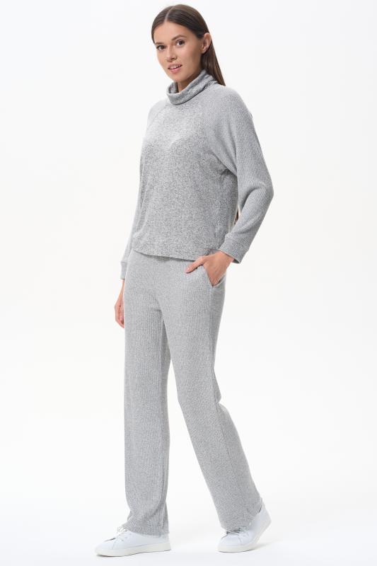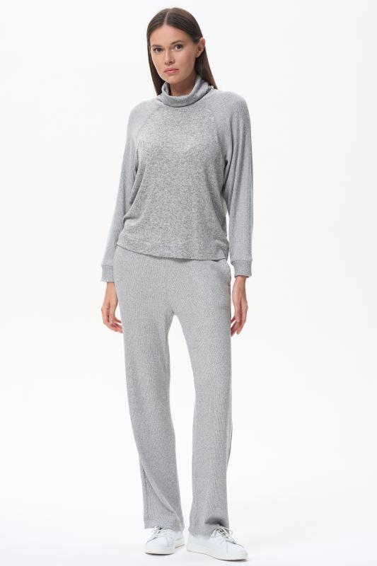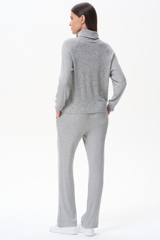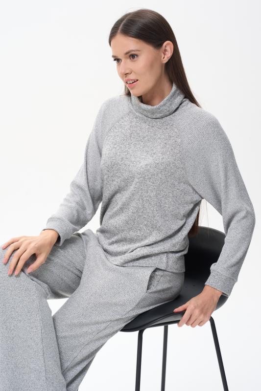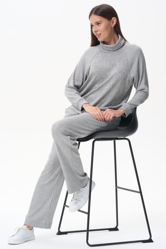 Уютный комплект из вязанного вискозного полотна. Джемпер с мягким воротником стойкой и длинными рукавами - реглан. Прямые брюки с карманами, пояс с эластичной тесьмой внутри. Рост модели на фото 177.