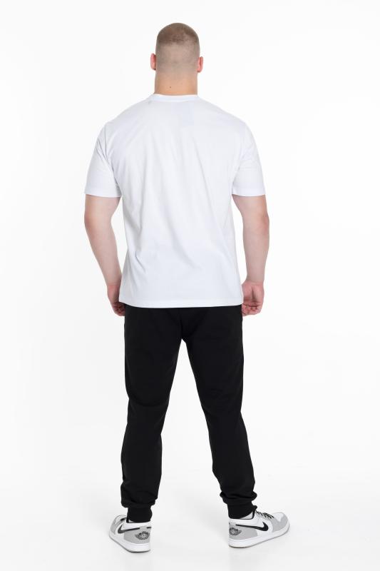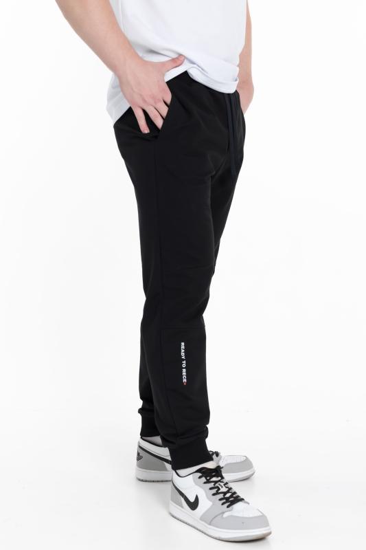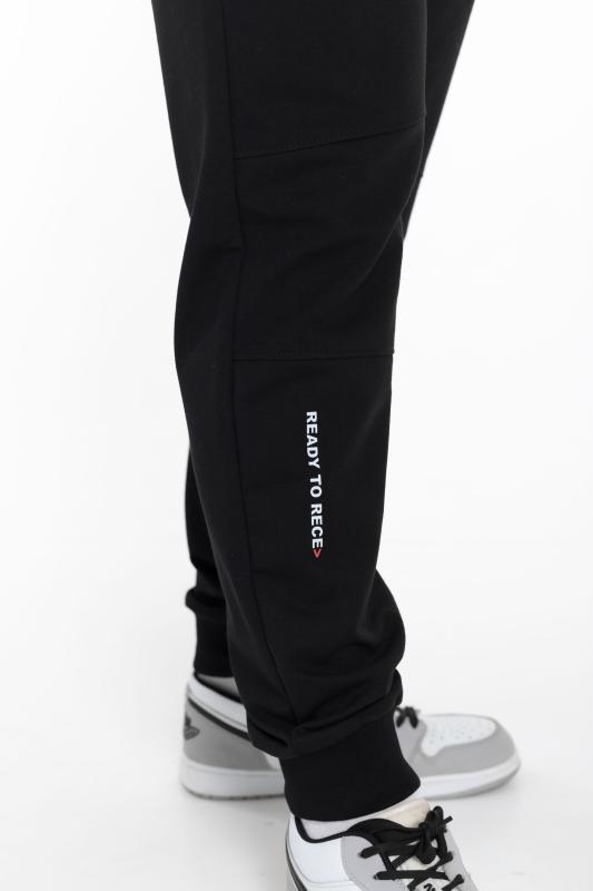 Мужские брюки из футера петли в однотонном черном цвете будут отличным выбором для комфортного и стильного образа. Брюки имеют прямой крой, широкий пояс на резинке и шнурке для регулировки посадки, боковые карманы для удобного хранения мелочей и низ штанин на резинке, обеспечивающий хорошую посадку. На левой штанине спереди внизу находится принт, который придает брюкам индивидуальность и стиль. Черный цвет универсален и легко сочетается с другой одеждой, позволяя вам создавать различные образы. Изготовленные из футера петли, эти брюки будут мягкими и уютными. Они идеально подойдут для ежедневного использования, спортивных тренировок или прогулок. В них вы будете чувствовать себя комфортно и стильно в любой ситуации.